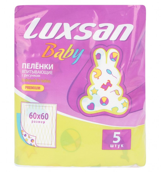 Пеленки впитывающие, р. 60смх60см 5 шт Люксан бэби с рисунком: Инструкция по применению